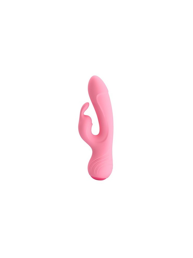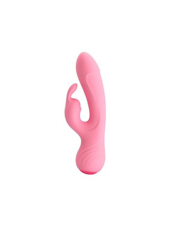 BRODERICK es un vibrador rabbit con forma de conejito que está fabricado en silicona apta para el cuerpo de color rosa claro.