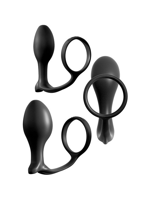 Kit de entrenamiento anal compuesto por tres estimuladores prostáticos de diferentes medidas y formas, para poder personalizar las sensaciones y conseguir las eyaculaciones mucho más explosivas. Fabricados completamente de una silicona extra sedosa, estos plug funcionan como un anilla de pene para mejorar las erecciones, lo que permite al usuario prolongar la eyaculación y la diversión mientras disfruta una estimulación prostática increíble.