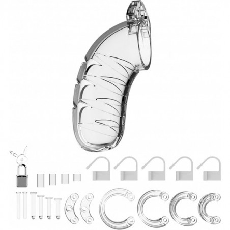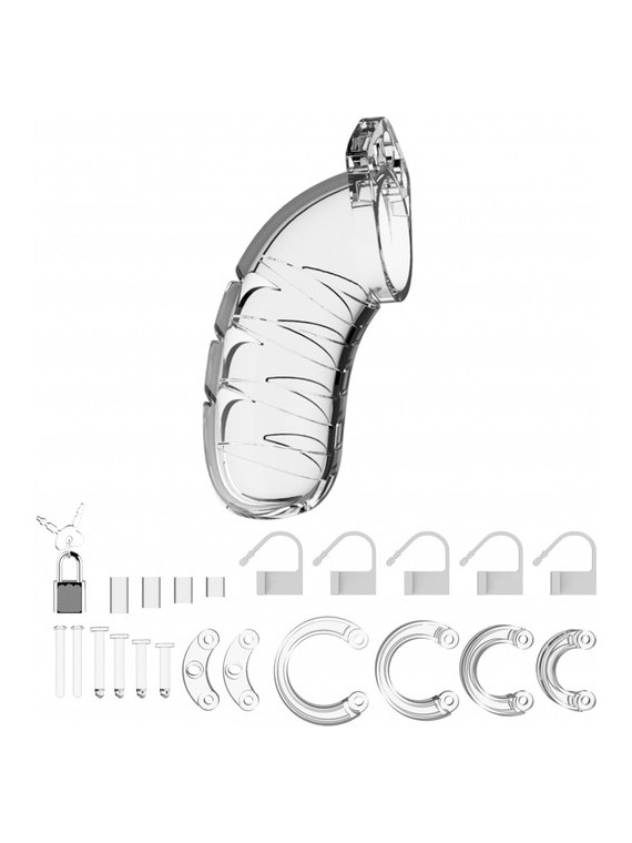 Las Jaulas de Castidad están fabricadas de policarbonato de alto grado, un material muy liviano, duradero e hipoalergénico. La jaula consiste de tres partes que encajan perfectamente. Los dos pernos de guía conectan las partes superiores y el perno cónico con forma de óvalo conecta los aros a la jaula. ¡Una variedad de aros en diferentes tamaños y a distintas distancias te permiten crear el tamaño perfecto!